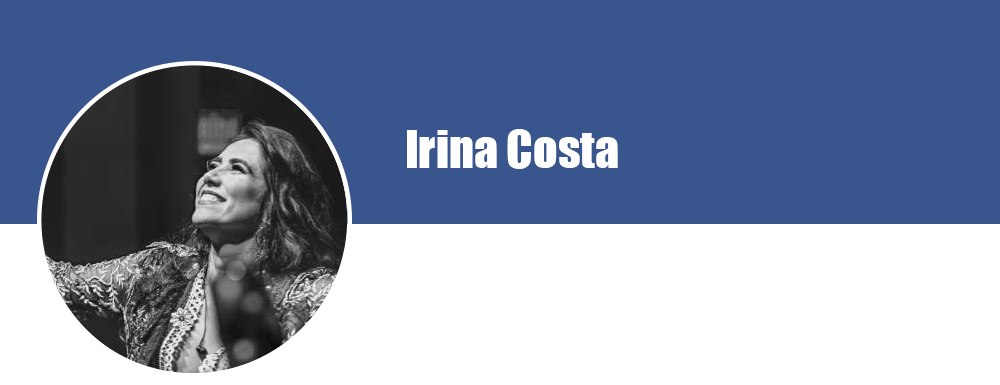 Irina Costa, portuguesa nascida em Angola, veio para o Brasil em 1975, para fugir da guerra civil, permaneceu morando em Maceió-AL desde então. Em 2002, fez sua primeira apresentação pública, “Meu primeiro canto”, reinterpretando o fado com músicos brasileiros. Representou o Brasil e Alagoas no concurso LUSAVOX, vencendo a 2ª edição com “O Cravo e a Rosa”. Ganhou três vezes o Prêmio Notáveis da Cultura Alagoana. Em 2013, apresentou-se em Macau com o projeto Fado-GuZheng. Em 2014, apresentou-se em Paris e Lyon nas comemorações dos 40 anos da Revolução dos Cravos. Em 2014, estreou o espetáculo “O mar fala de mim” em Maceió, reapresentado em 2015 e 2019 com grande sucesso.